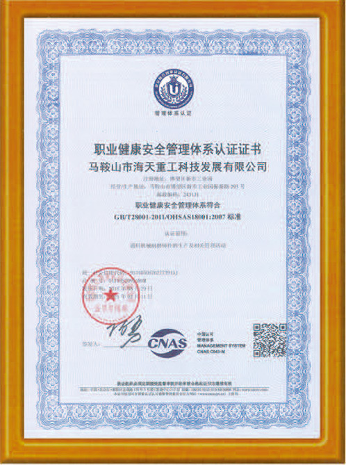 職業健康與安全管理體系認證證書 發布時間:2021-12-24     次瀏覽