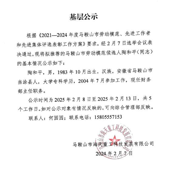馬鞍山市勞動模范和先進工作者基層公示 發布時間:2025-02-08     次瀏覽