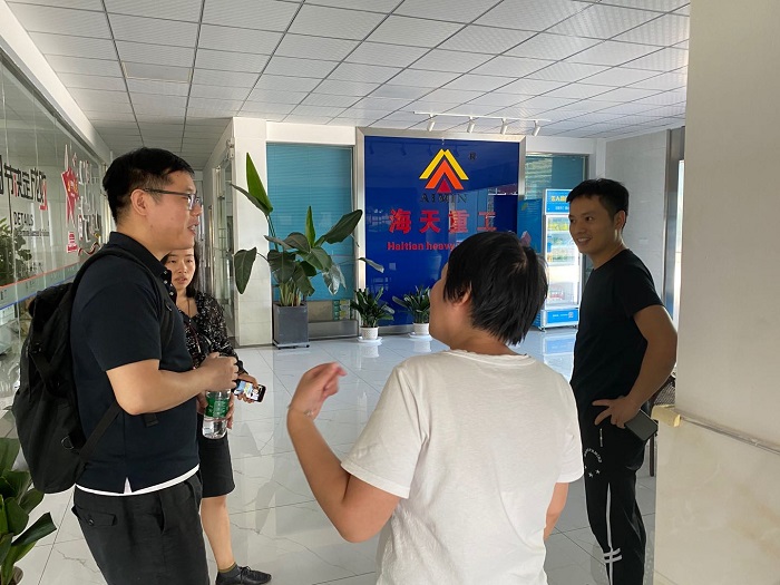 2020年9月3日,杭州東鯤科技來司訪問參觀;期間海天營銷部主管袁忠花熱情地接待了他們,隨后參觀了解海天的倉庫并且在離廠時在門口拍照合影。